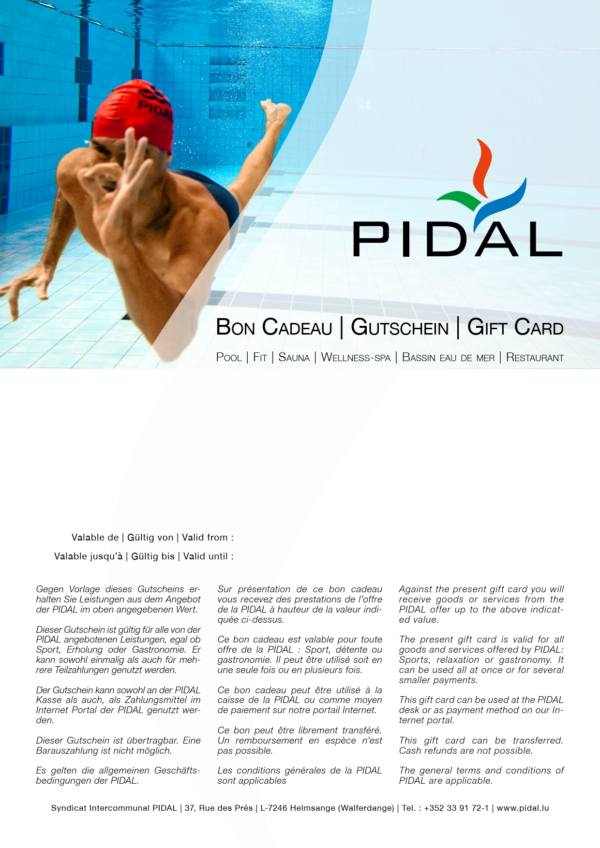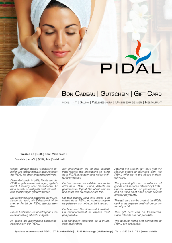 Offrez un bon cadeau PIDAL avec lequel la personne qui le reçoit peut choisir librement de quel service de la PIDAL elle veut se faire gâter.
