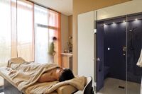 Réchauffement dans la douche à vapeur / gommage à la cerise et à la vanille / massage corporel unique à l'huile de cerise et à la vanille.